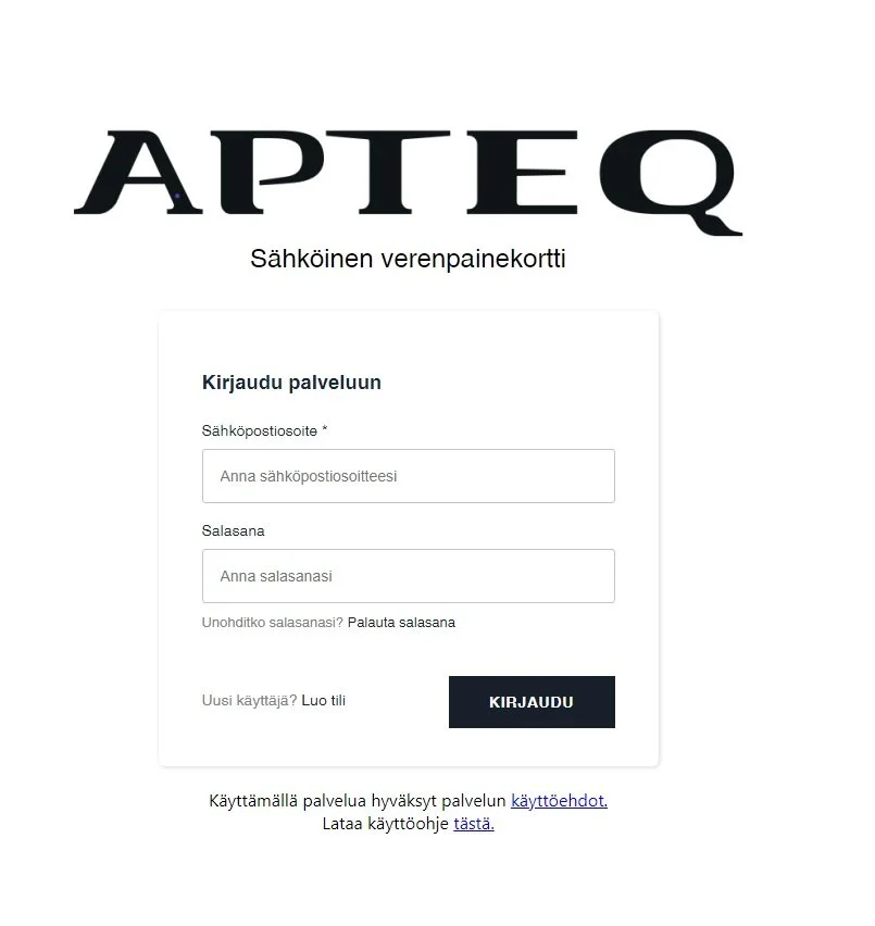 Kaikki verenpaineseurantajaksot ovat tallessa omalla henkilökohtaisella tilillä, johon kirjaudut syöttämällä sähköpostiosoitteesi ja itse määrittämäsi salasanan. Voit tarkastella ja täydentää seurantajaksojasi missä ja milloin vain.